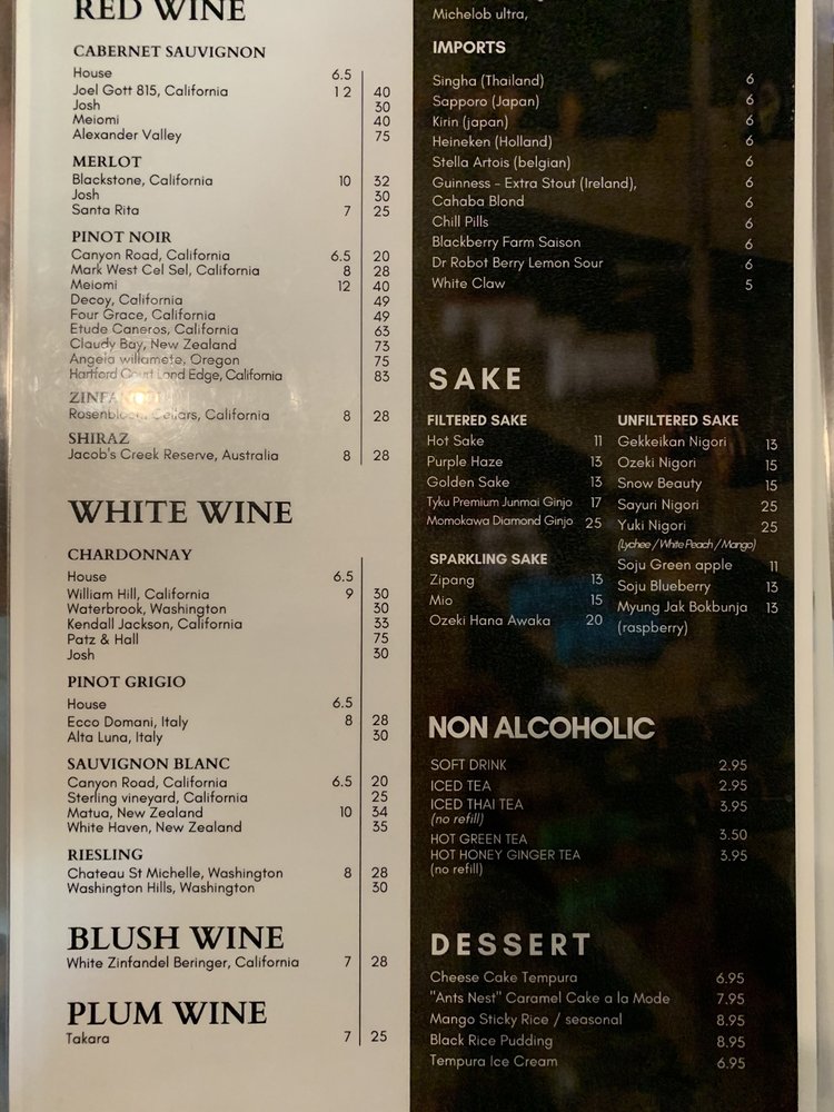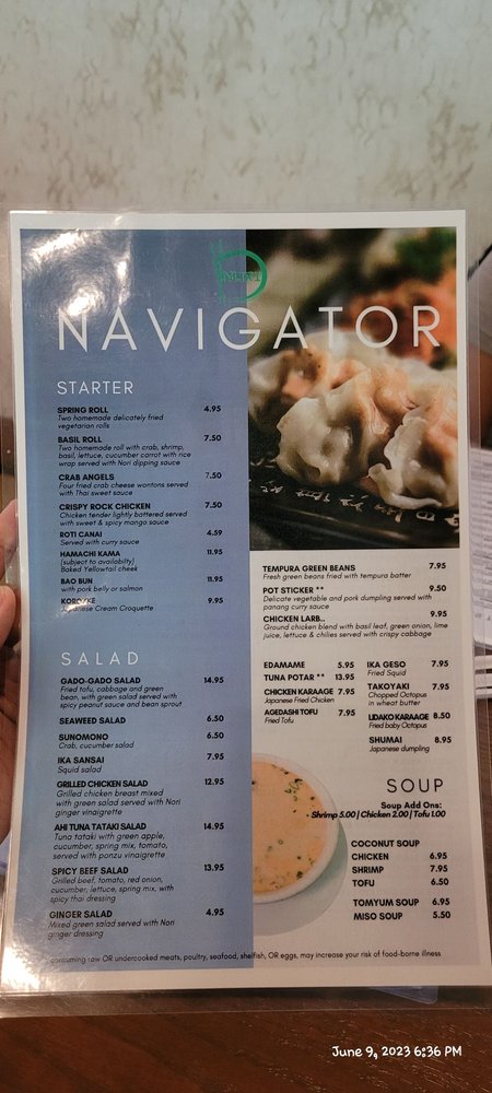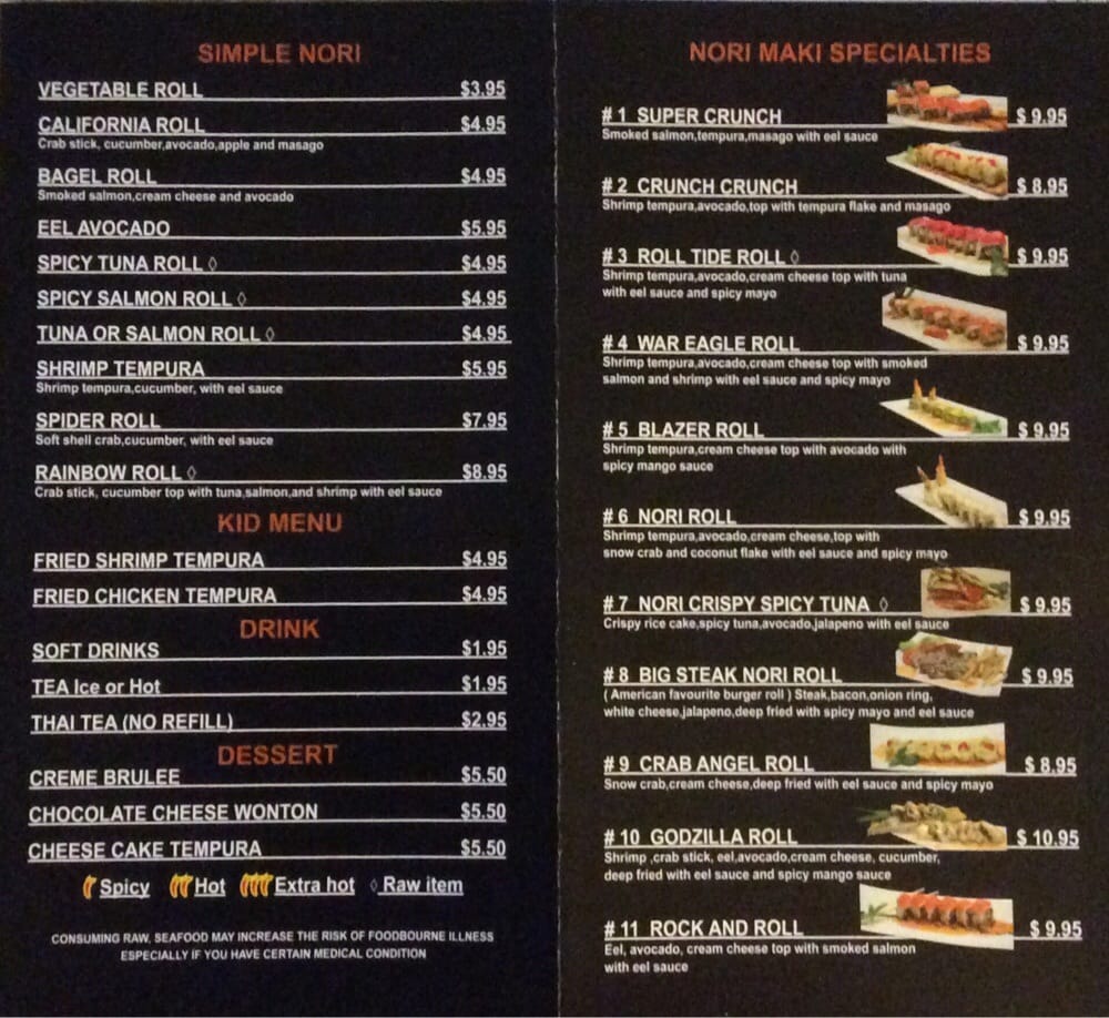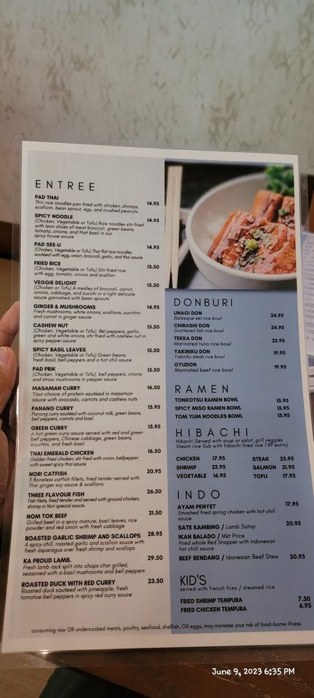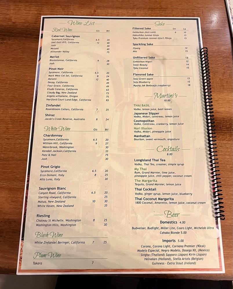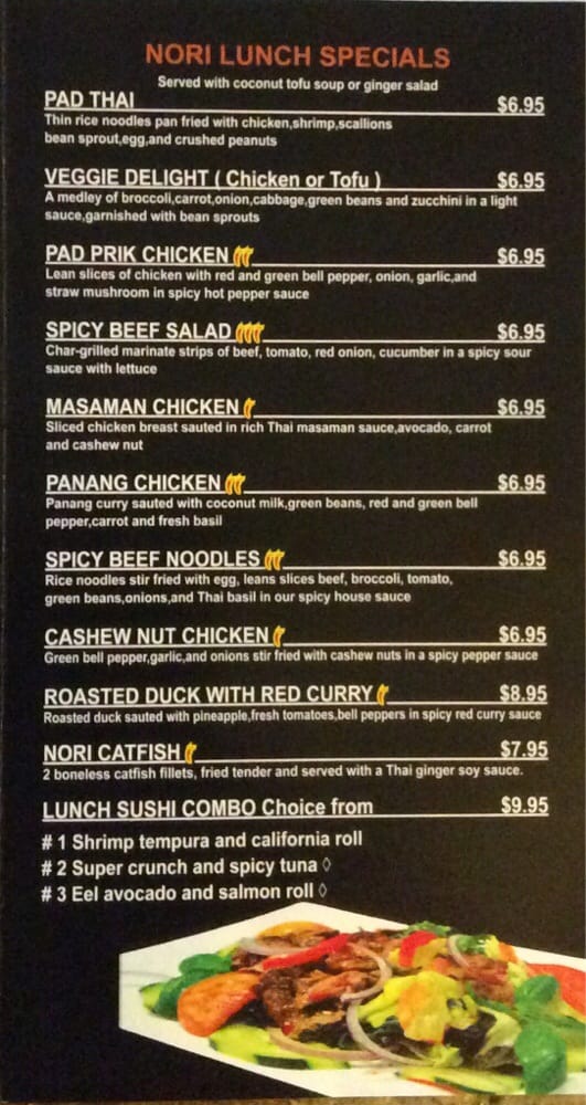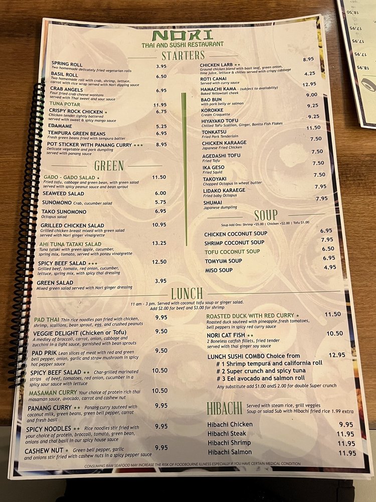 Nori Thai and Sushi Restaurant Menu